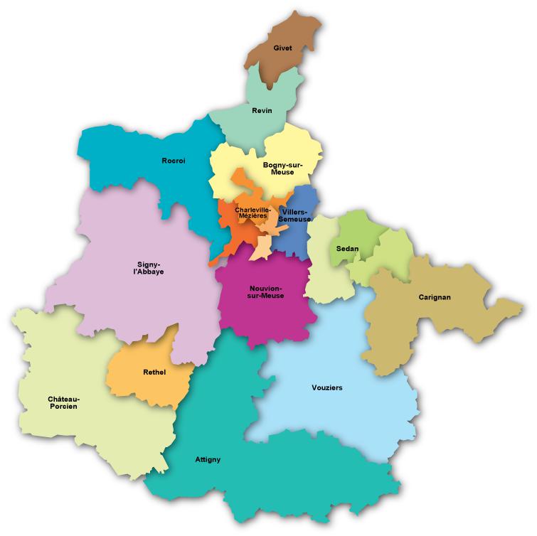 Carte des nouveaux cantons des Ardennes avec villes et communes