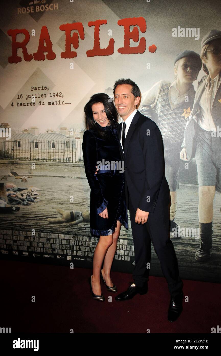 Gad Elmaleh and girlfriend Marie Drucker arriving for the premiere of 'La Rafle' held at the