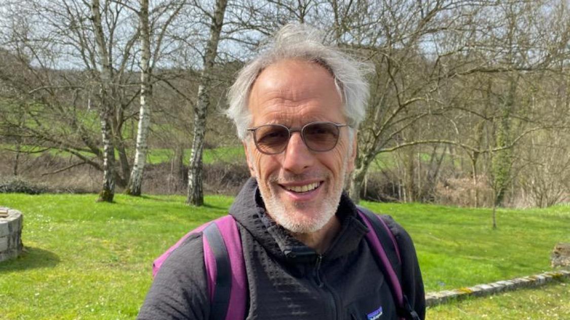 Hervé Pauchon tend le micro aux habitants de la "diagonale du vide". L'ancien chroniqueur de France Inter s'est lancé fin mars dans une traversée de la France en marchant. Parti des Ardennes.