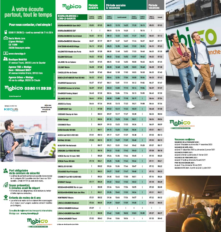 Fiches horaires des lignes régulières actuellement en vigueur. Le 1er septembre, les horaires des lignes régulières du Jura ont évolué. Vous retrouverez leurs horaires sur le site viamobigo.