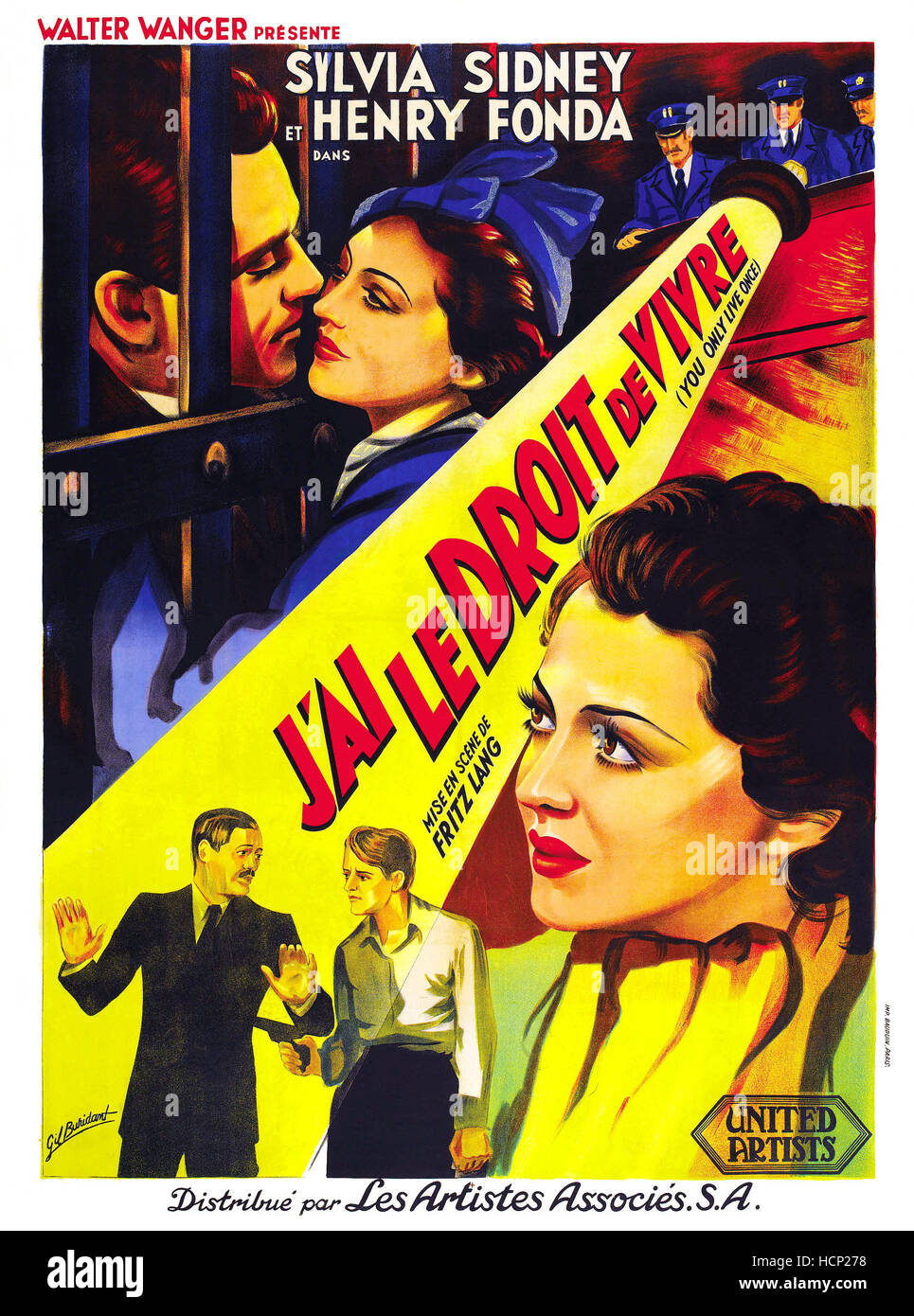 YOU ONLY LIVE ONCE, (aka J'AI LE DROIT DE VIVRE), French poster, top from left Henry Fonda