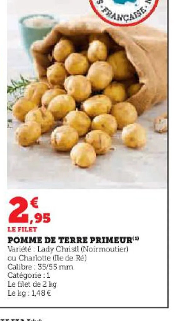 Promo POMME DE TERRE PRIMEUR" Variété Lady Christl (Noirmoutier) chez Super U