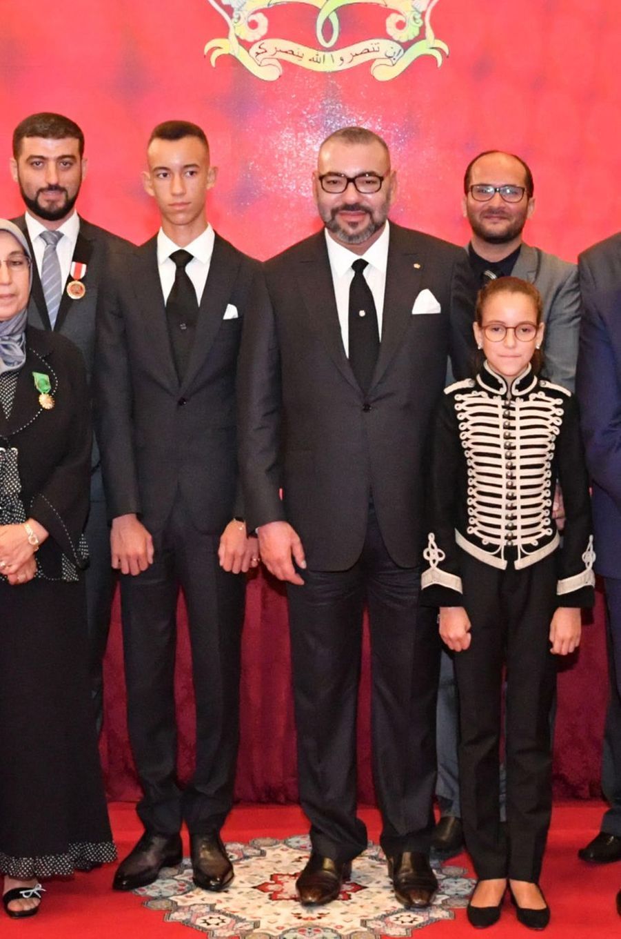 Le roi du Maroc Mohammed VI a présidé une cérémonie, entouré de ses deux enfants