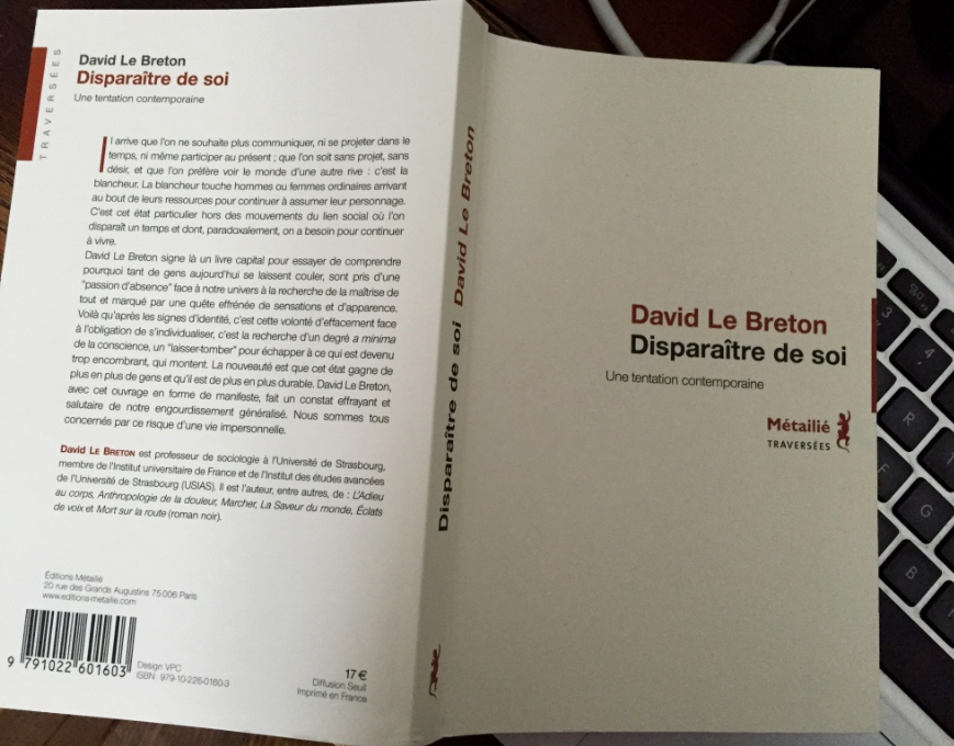 David le Breton (né en 1953) est professeur à l'université de Strasbourg, membre de l'Institut universitaire de France. il est spécialiste des représentations et des mises en jeu du corps humain, qu'il a notamment étudiées en analysant les conduites à risque.Il se trouve que j'ai récemment assisté à une conférence (fort intéressante) qu'il a donné sur ce thème. du coup, j'ai.