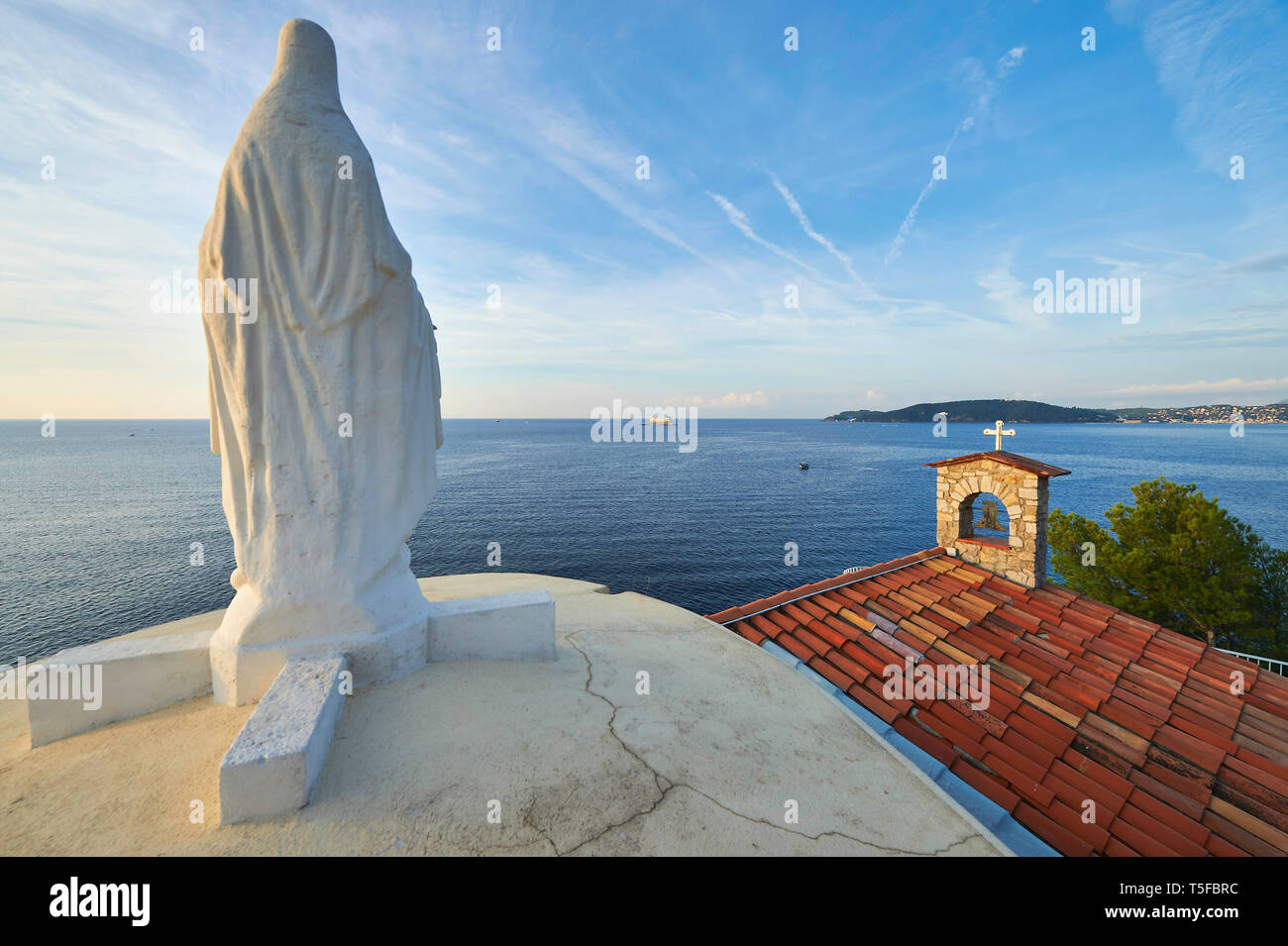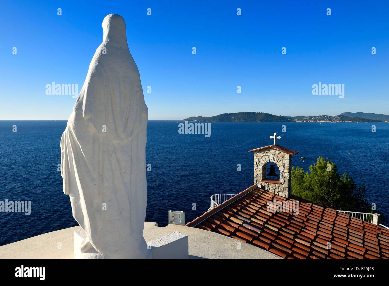 France, Var, the Rade (Roadstead) of Toulon, cap Brun, Statue of the Virgin Mary atop the chapel
