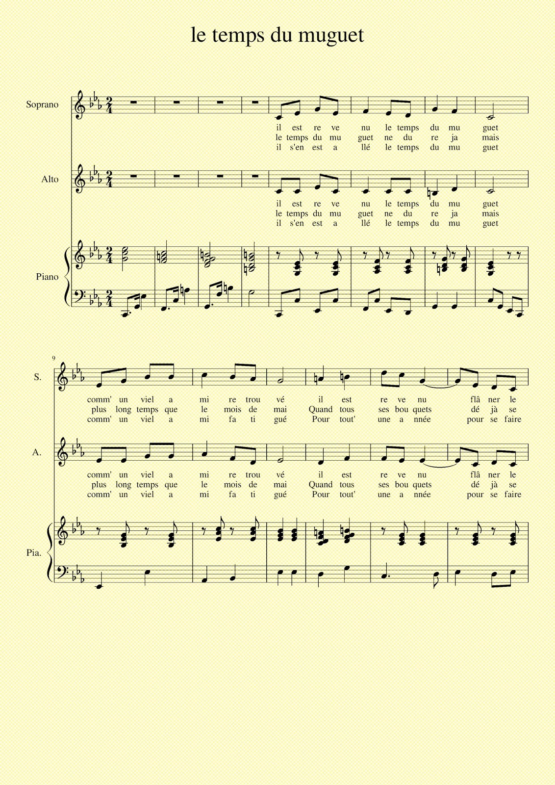 Chorale Rayon de Soleil PARTITIONS du muguet on ne voit pas le temps passer