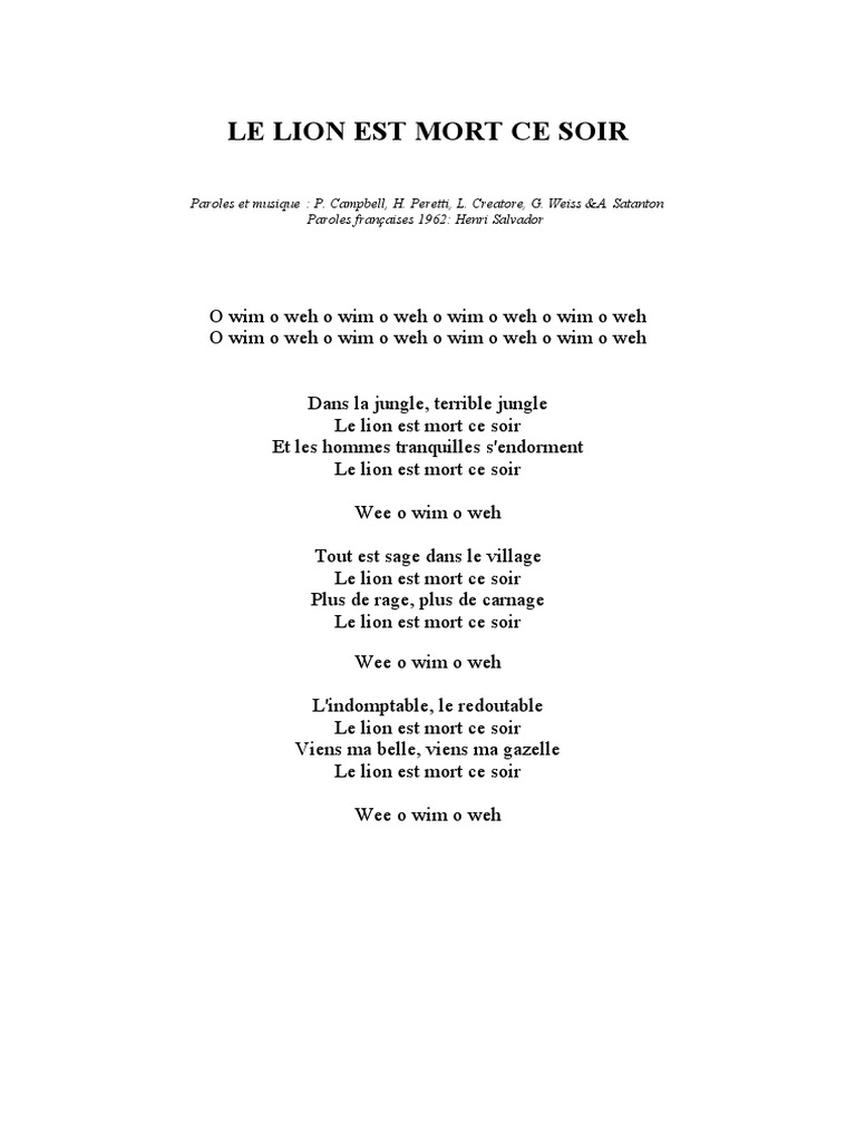 Nicoletta. Il est mort Il est mort, le soleil Quand tu m′as quittée. Il est mort, l'été L′amour et le soleil C'est pareil Il est mort Il est mort, le soleil Mais je suis la seule à porter le deuil Et le jour ne franchit plus mon seuil Hier, on dormait sur le sable chaud Hier pour moi il faisait beau Il faisait beau même en hiver C.