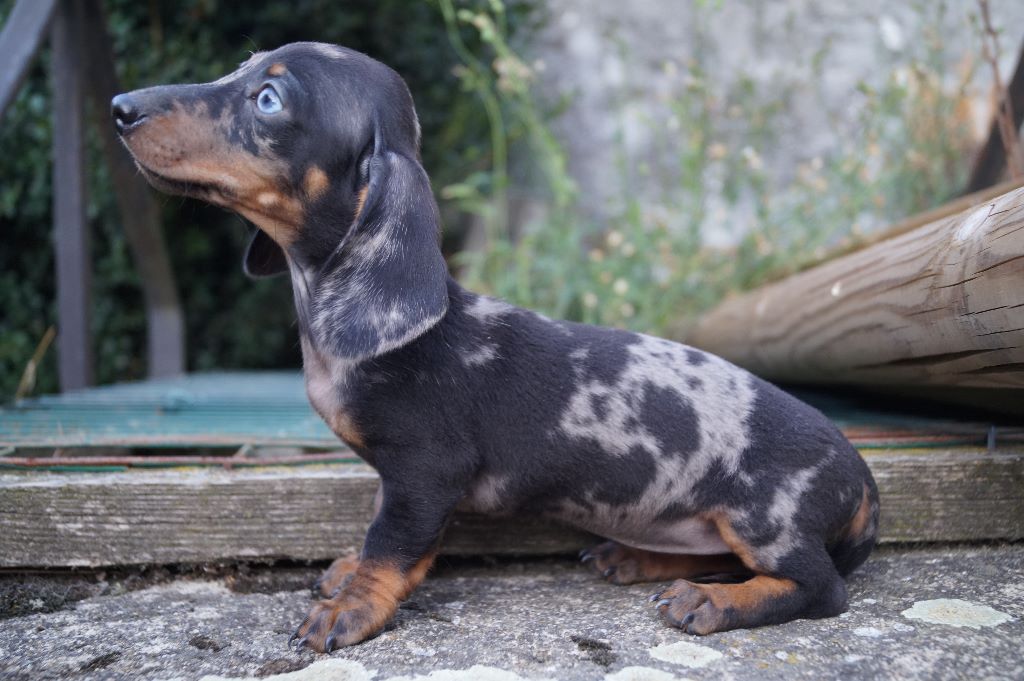 Chiot Teckel poil ras, LUSSY nain arlequin, femelle disponible en Aquitaine, 33 Gironde