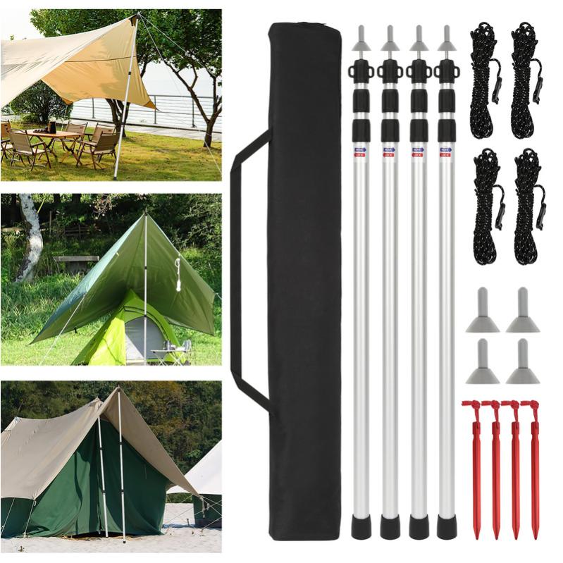 4x Mâts de tente mât de tente mât de tarp mât de levage sac de transport mâts de levage 87234cm