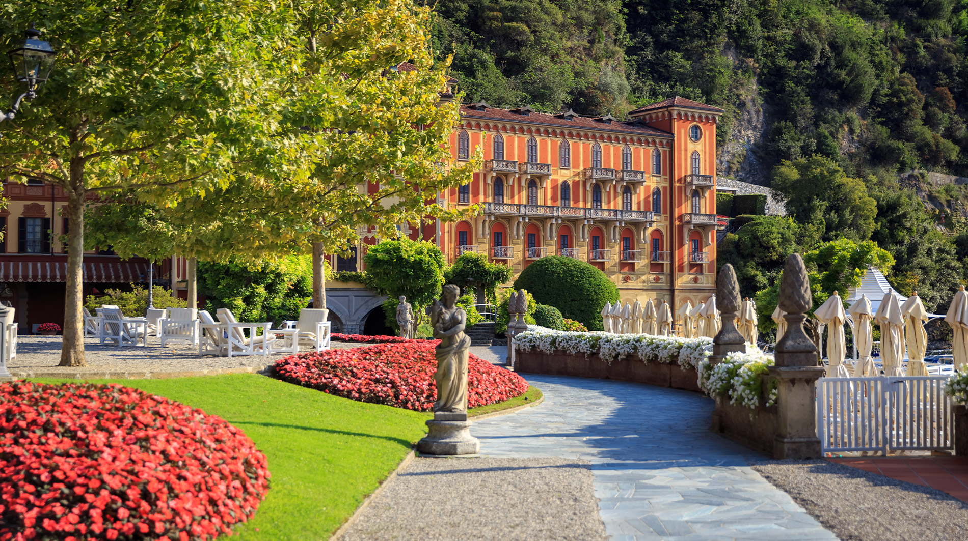 Located on the shores of Lake Como, one of the most romantic settings in the world, Villa d'Este is surrounded by 25 acres of enchanting park with centennial trees, statues and colorful flowers. Built in 1568 as the summer residence of Cardinal Tolomeo Gallio, it was transformed into a luxury hotel in 1873, becoming a favorite destination for.